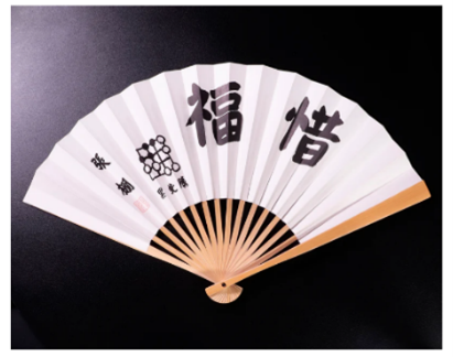 左図 記号扇子 日本棋院 揮毫太骨扇子 囲碁棋士 張栩